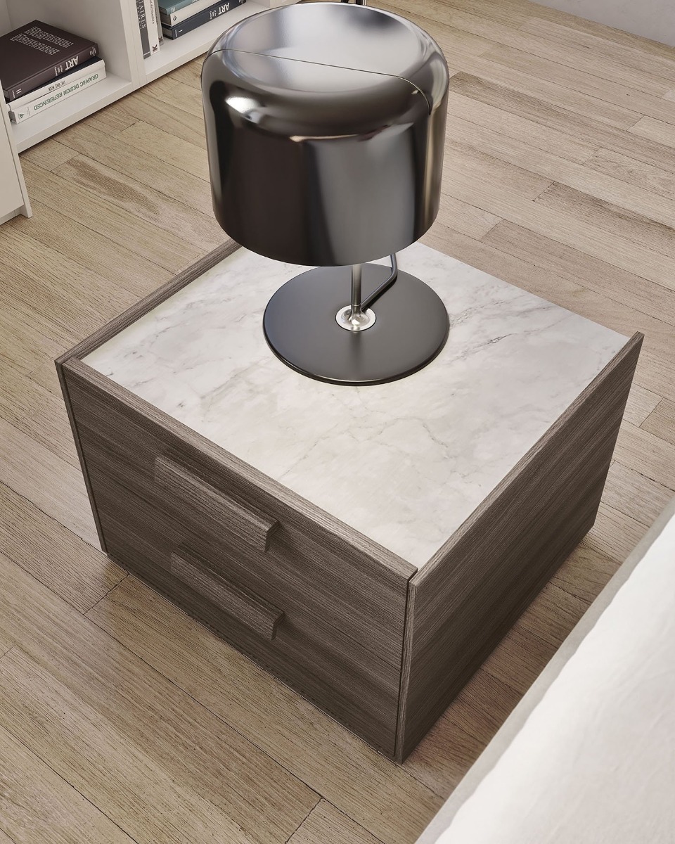 • Gruppi notte (comodini e comò) con sistemi di scorrimento ammortizzati