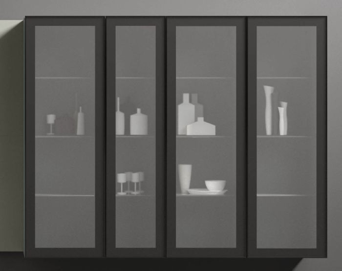 N°3 moduli battente pensili (L 40 x P 35 x H 120 cm) in vetro fumè satinato;