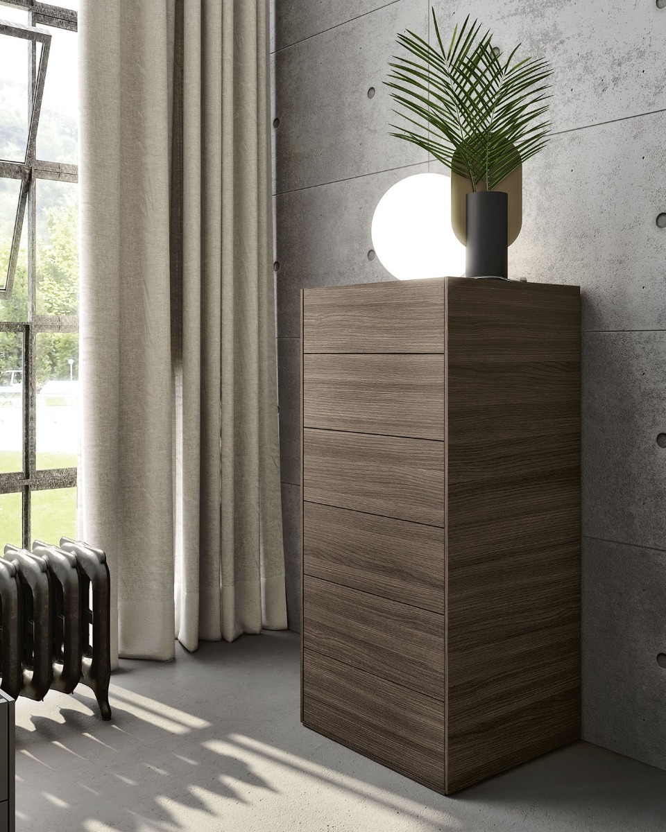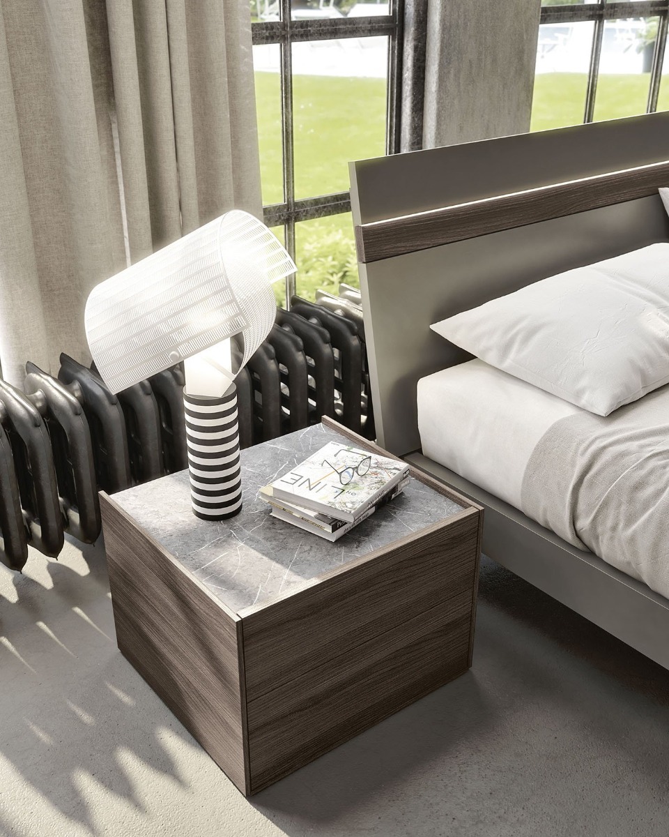 • Gruppi notte (comodini e comò) con sistemi di scorrimento ammortizzati