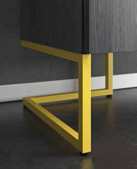 Composizione con 2 elementi da L 140 x P 45 x H 172 cm cad. con moduli battenti. Finitura rovere grigio con basamento serie "Grafico" in finitura laccato opaco zafferano.
