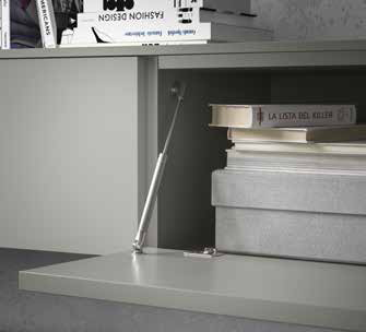 Composizione da L 300 x P 45 x H 60 cm con moduli ribalta. Finitura laccato opaco fumo.