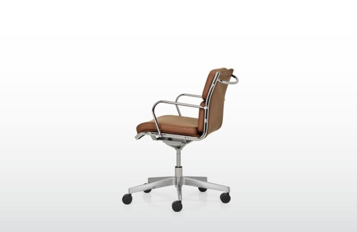 Poltrona direzionale senza braccioli con meccanismo piastra girevole M8 e base Loop in alluminio: L 68 x P 68 x H 83/93 cm (H seduta 46/56 cm)