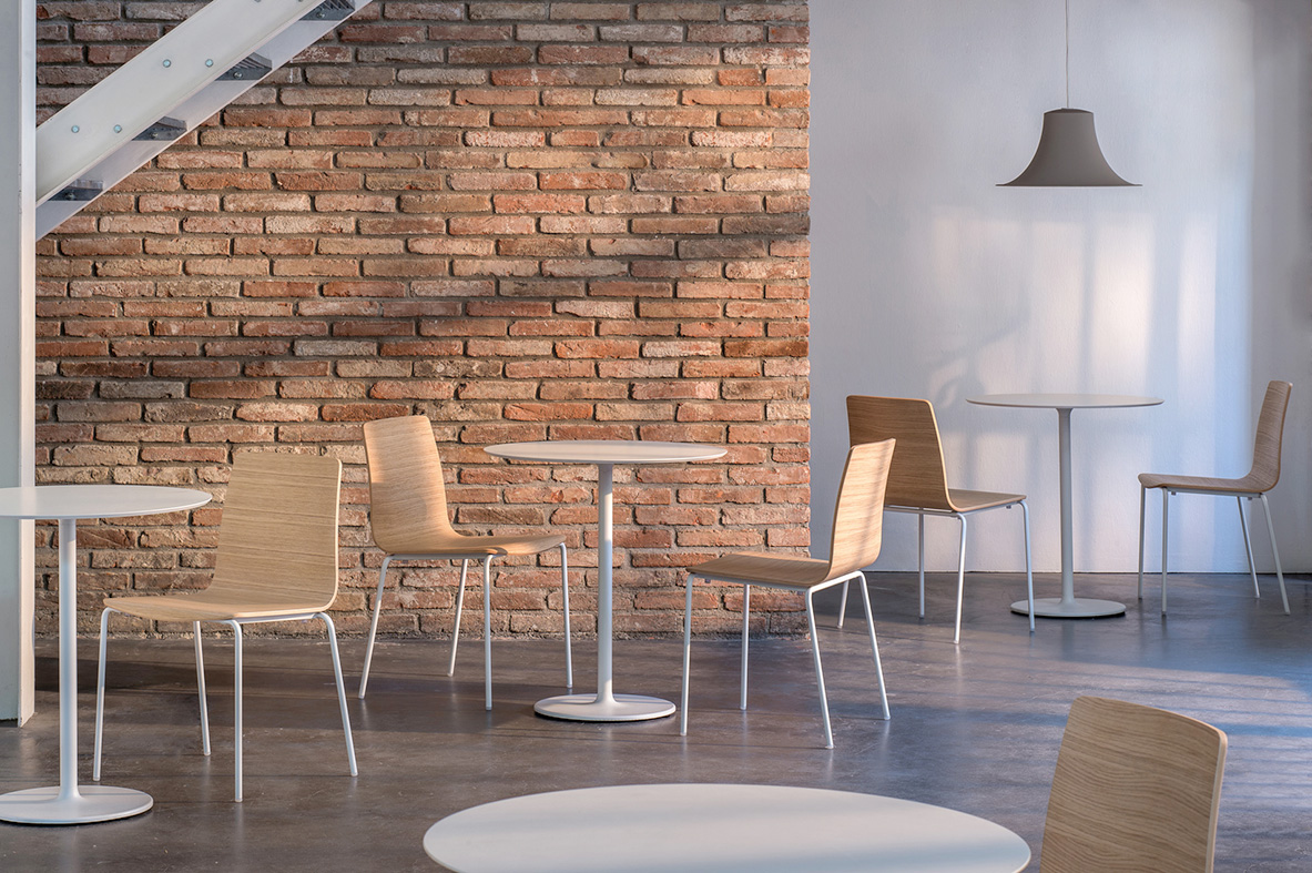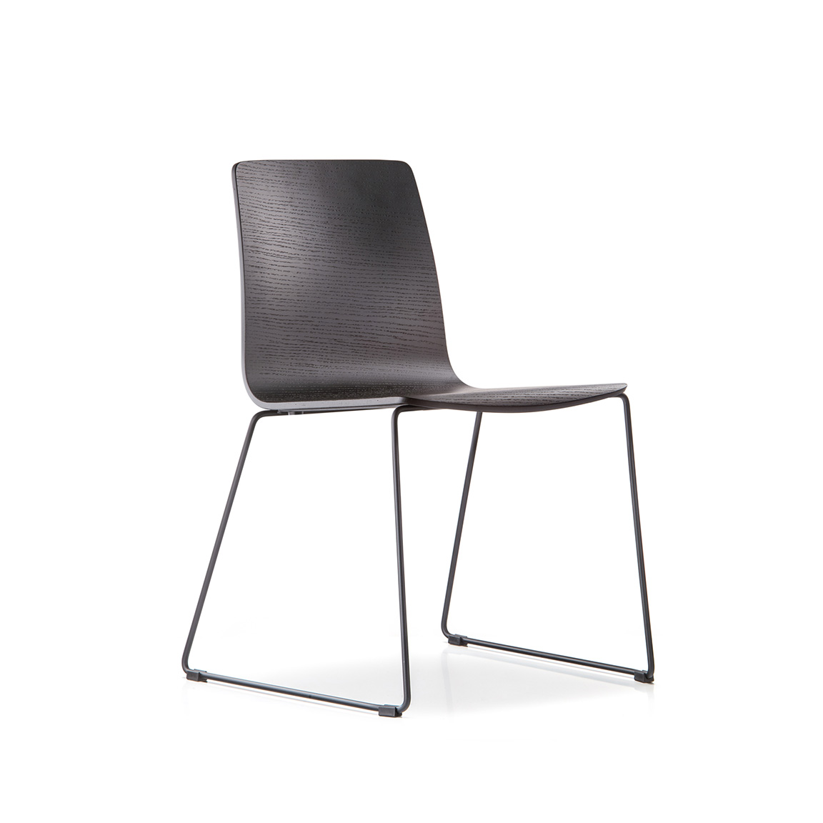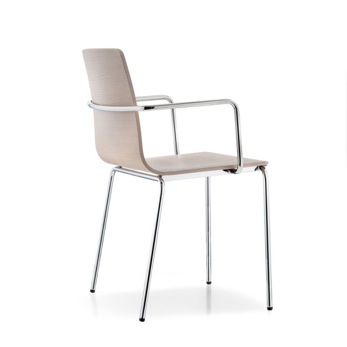 Coppia di sedie impilabili caratterizzate da linee morbide ed essenziali. La scocca è in multistrato impiallacciato rovere disponibile in diverse finiture. La struttura è in tubo d’acciaio cromato o verniciato Ø16 mm anche nella versione a slitta con tubo d'acciaio Ø10 mm. Coppia di poltrone impilabili caratterizzate da linee morbide ed essenziali. La scocca è in multistrato impiallacciato rovere disponibile in diverse finiture. Le gambe e i braccioli sono in tubo d’acciaio cromato o verniciato Ø16 mm.