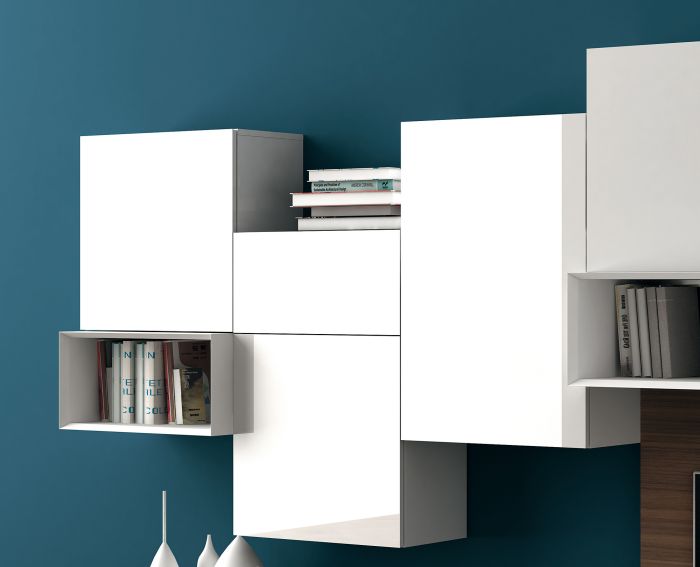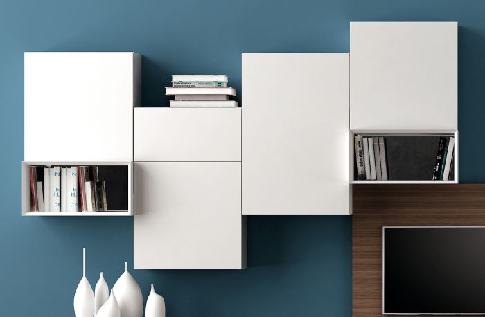 N°2 Moduli pensili a giorno (L 60 x P 45 x H 30 cm cad.) in finitura laccato opaco bianco