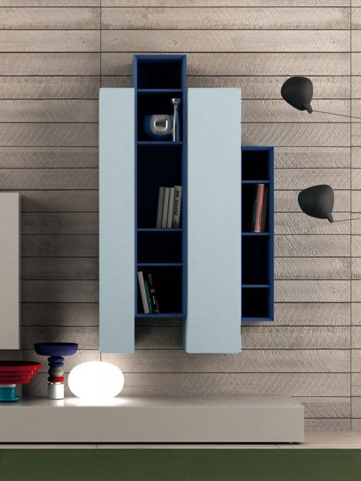 N°1 modulo pensile con anta battente (L 20 x P 45 x H 150 cm) in finitura laccato opaco cielo