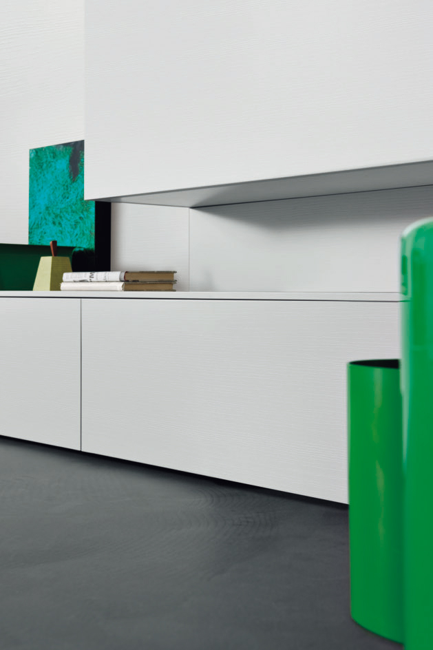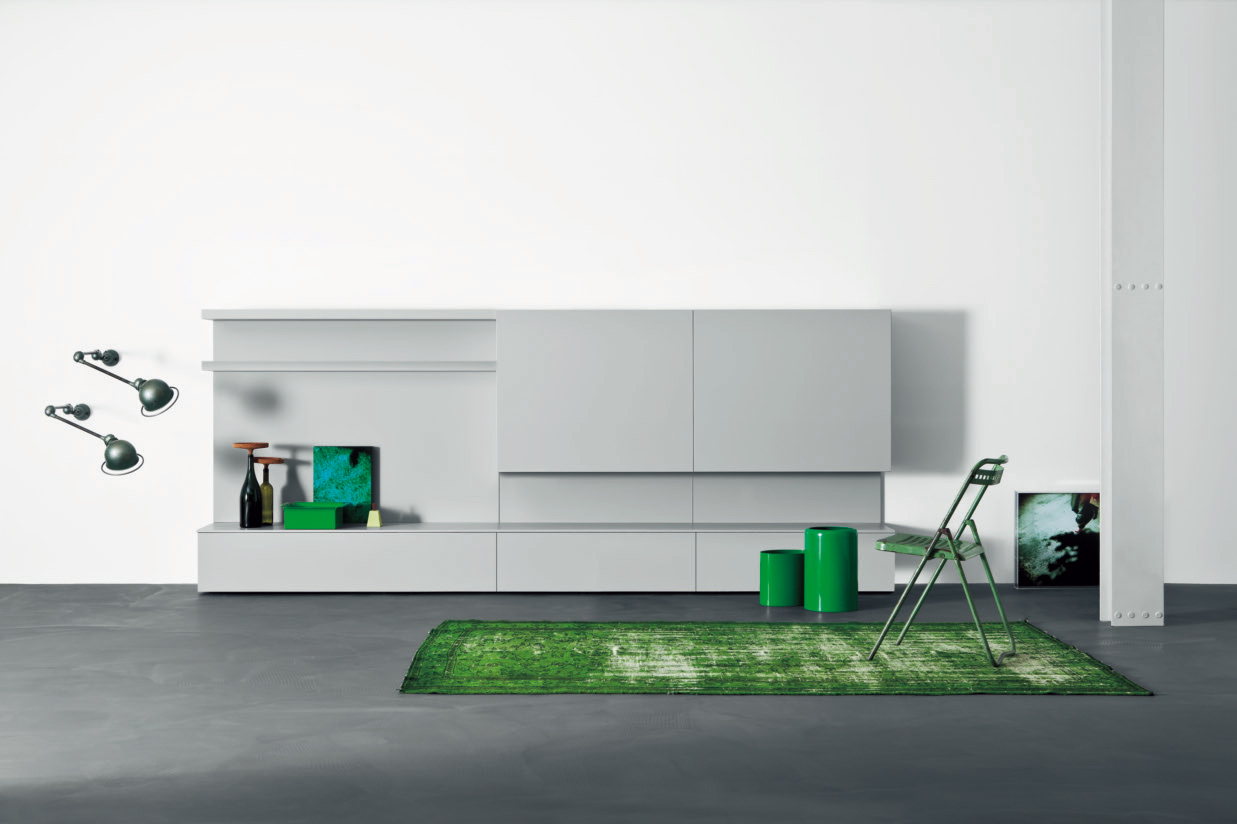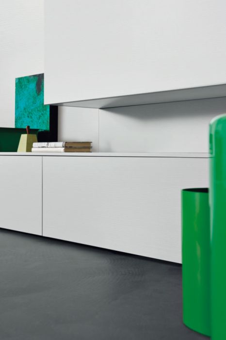 N°1 Modulo a terra con anta a ribalta (L 150 x P 45 x H 31 cm) in finitura laccato opaco nuvola