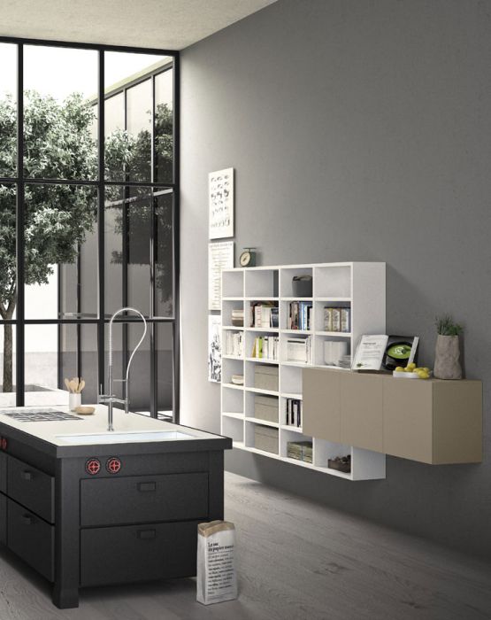 "...per chi desidera un assetto pratico e un sapore contemporaneo e concreto, spesso ripiani e divisori non bastano ad organizzare gli spazi. Usciamo dunque dal concetto classico di libreria ed addentriamoci in una dimensione di sistema living polifunzionale. Per chi ha bisogno di contenere, di aprire e chiudere nuovi spazi, di dare un ordine alla casa e ai propri progetti..."