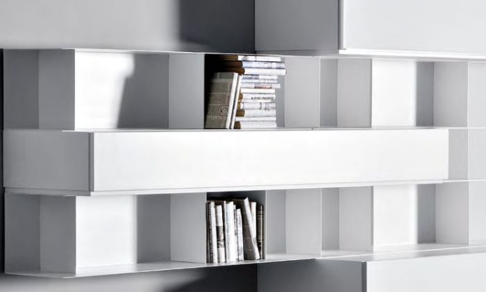 N°1 modulo pensile con cassetto (L 196 x P 42 x H 19 cm) in finitura laccato lucido bianco