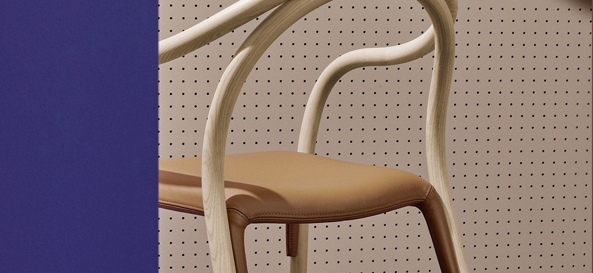 La nuova seduta riprende le linee della collezione, sottolineandone ed esaltandone con delicatezza l’idea di comfort e accoglienza.