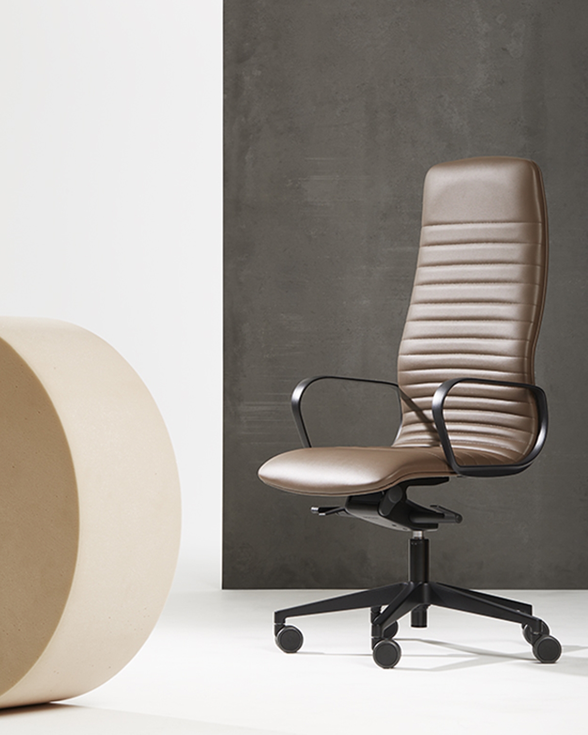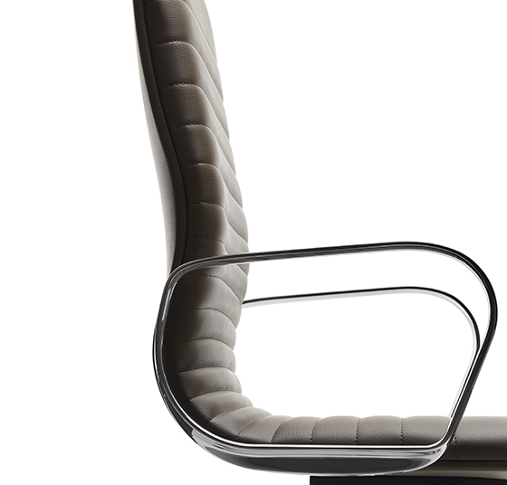 Ricercatezza di materiali e finiture per una seduta dal design intramontabile, che trova naturale impiego negli ambienti di lavoro che vivono l’atmosfera delle occasioni importanti.