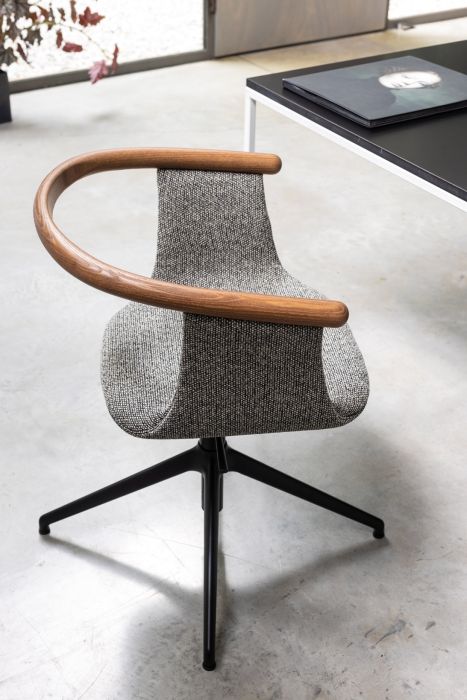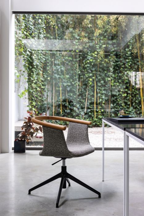 Yuumi conta anche di una versione dedicata all’ufficio e agli spazi di lavoro, anche in ambito residenziale, con struttura girevole e regolabile in altezza, con colonna centrale e base a quattro razze in metallo color antracite.